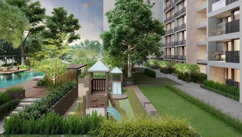 Outdoor features like landscaped gardens, jogging paths, and play areas for children encourage active lifestyles. There are also designated seating areas for senior citizens, ensuring comfort for everyone.